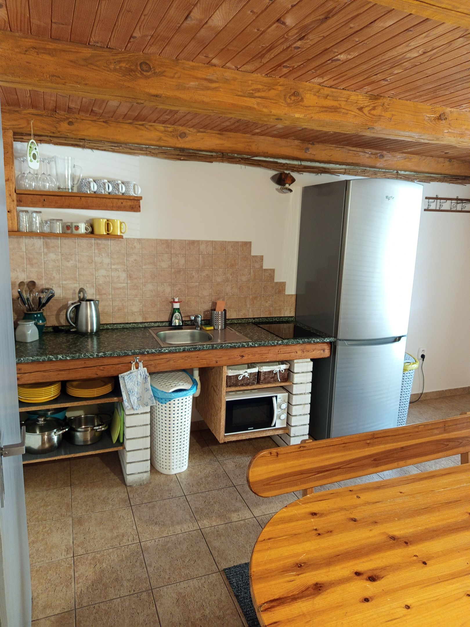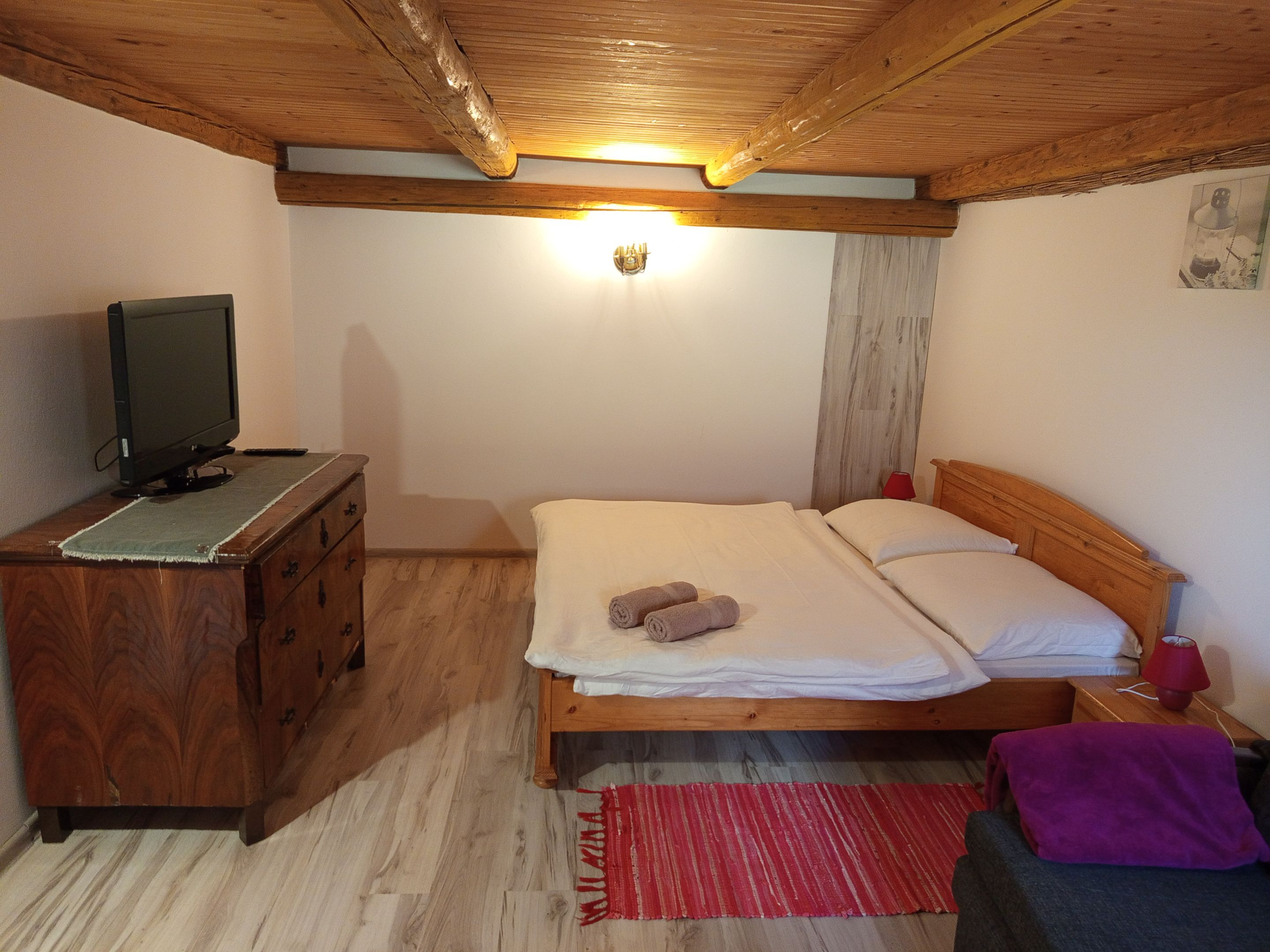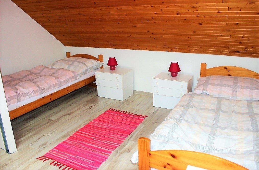 Apartmán 1 na prízemí pre šesť osôb so samostatným vchodom. Apartmán disponuje jednou spálňou s manželskou posteľou a dvoma samostatnými lôžkami. V druhej izbe je pohodlná rozkladacia pohovka pre dve osoby, z ktorej môžete sledovať Váš obľúbený program, kuchynské sedenie a plne vybavená kuchyňa so vstavanými spotrebičmi. Apartmán má svoju kúpeľňu so sprchovacím kútom a toaletou.